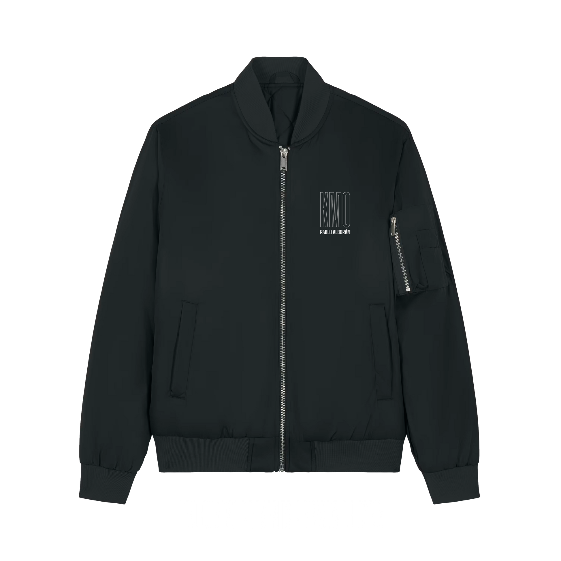 Bomber negra diseñada en edición limitada para el álbum de "KM0". Lleva el nombre de Pablo Alborán marcado en blanco en el pecho y el emblema “KM0” en la espalda, como un pequeño recuerdo de dónde empieza todo.