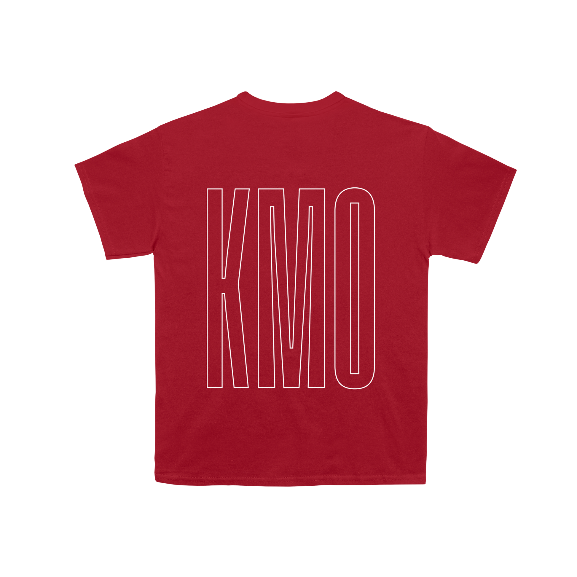Camiseta roja edición especial del álbum "KM0" de Pablo Alborán. Presenta el nombre del artista en blanco en el frente y el emblema “KM0” en la parte posterior.
